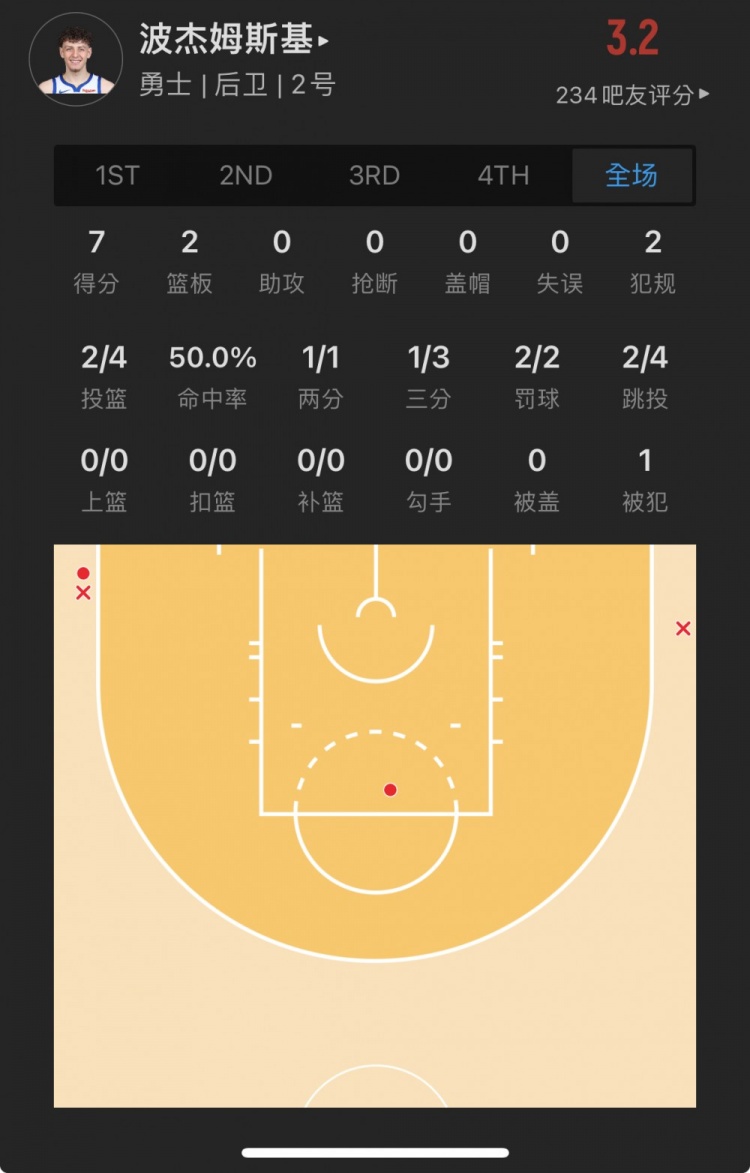 勇士19号秀 布兰丁-波杰姆斯基 出战18.6分钟