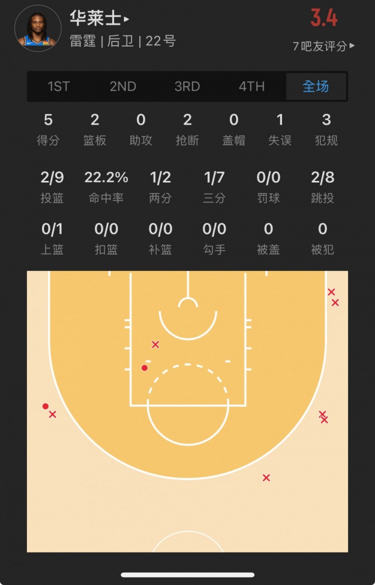 雷霆10号秀 卡森-华莱士 出战24.4分钟