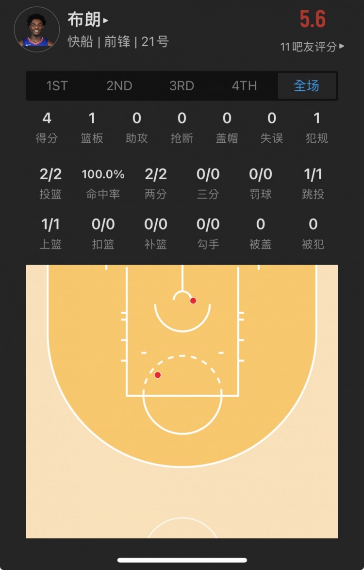 快船30号秀 科比-布朗 出战5.3分钟