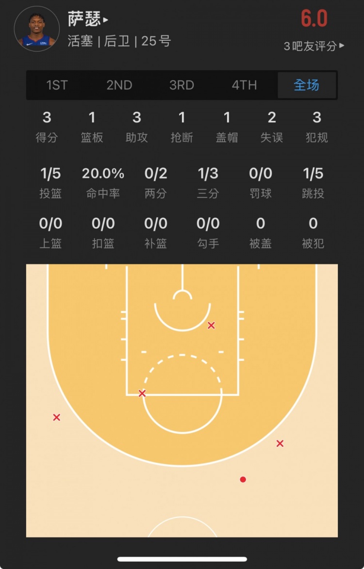 活塞25号秀 马库斯-萨瑟 出战27.1分钟