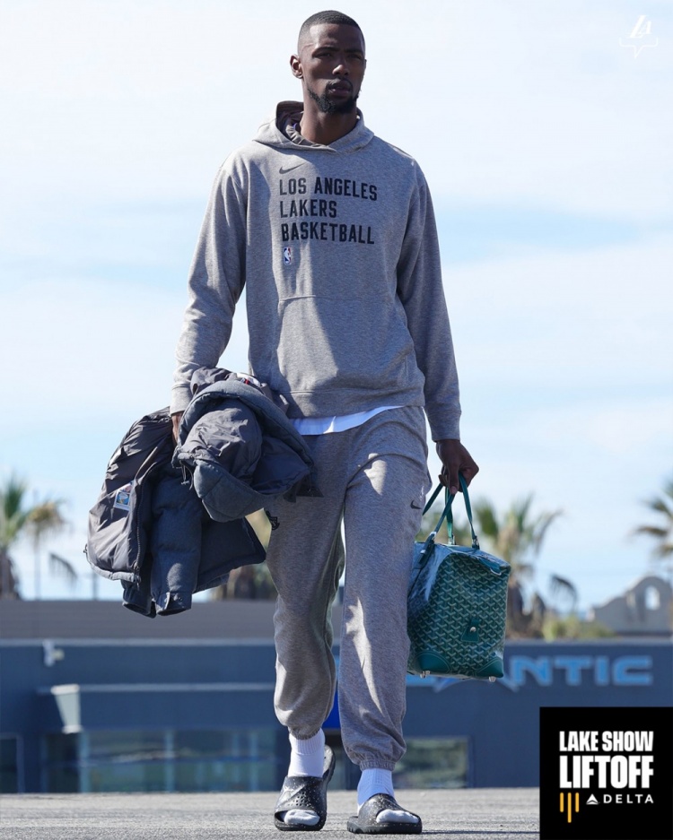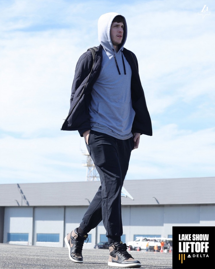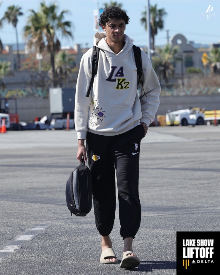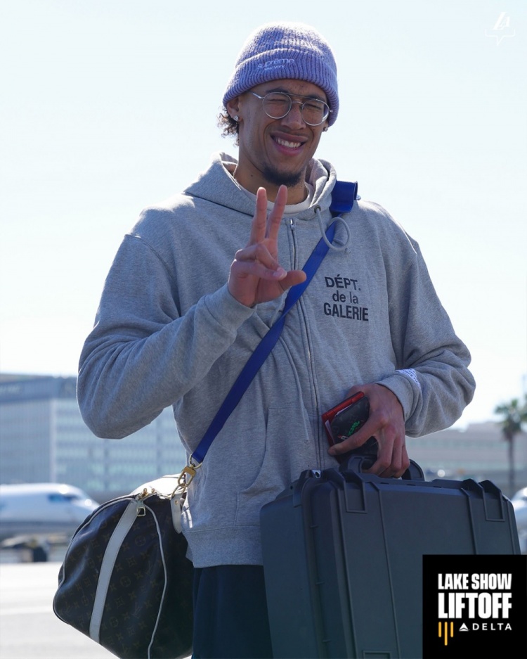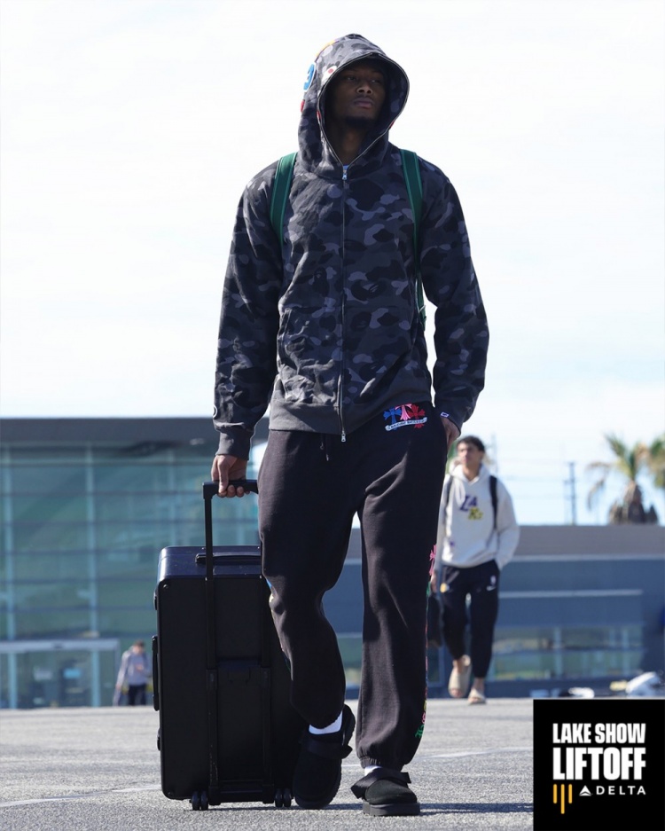 湖人官方今日在Instagram晒出了众球员出发前往客场的登机照,老詹一身运动装头戴鸭舌帽,球员们表情轻松。