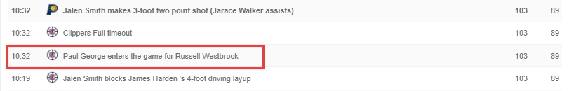 第二套阵容导致了快船大崩盘,卢在末节一开始就用了这个阵容,1分半的时间里让对手拿了6分,分差从8分来到了14分,卢在10分32秒喊下暂停,用乔治换下威少。