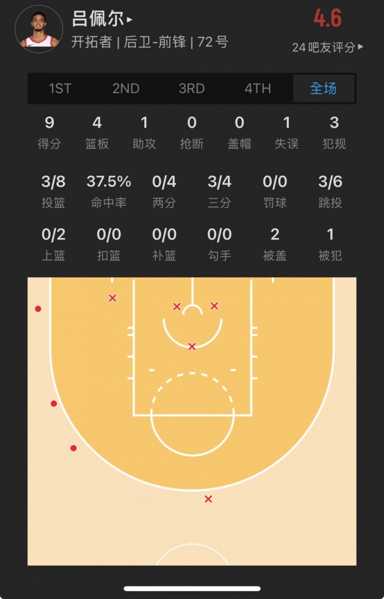 开拓者43号秀 拉扬-吕佩尔 出战23.2分钟