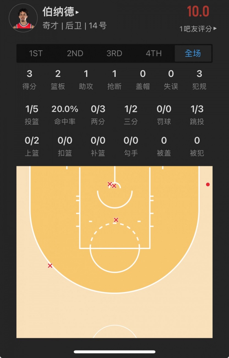 奇才落选秀 朱尔斯-伯纳德 出战13.4分钟