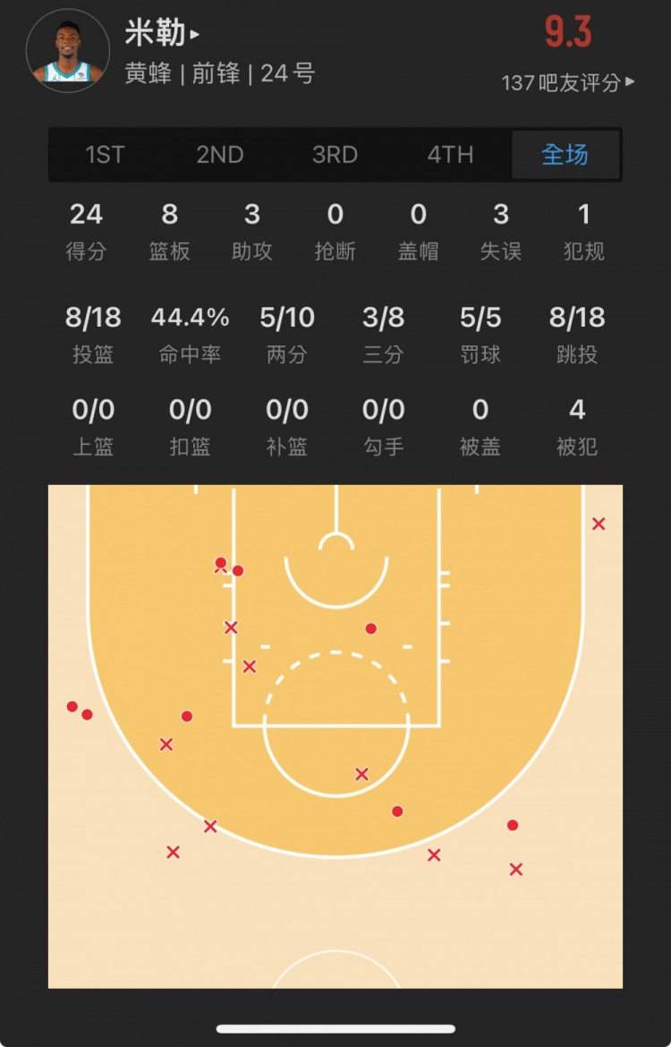 黄蜂榜眼秀 布兰登-米勒 出战37.0分钟