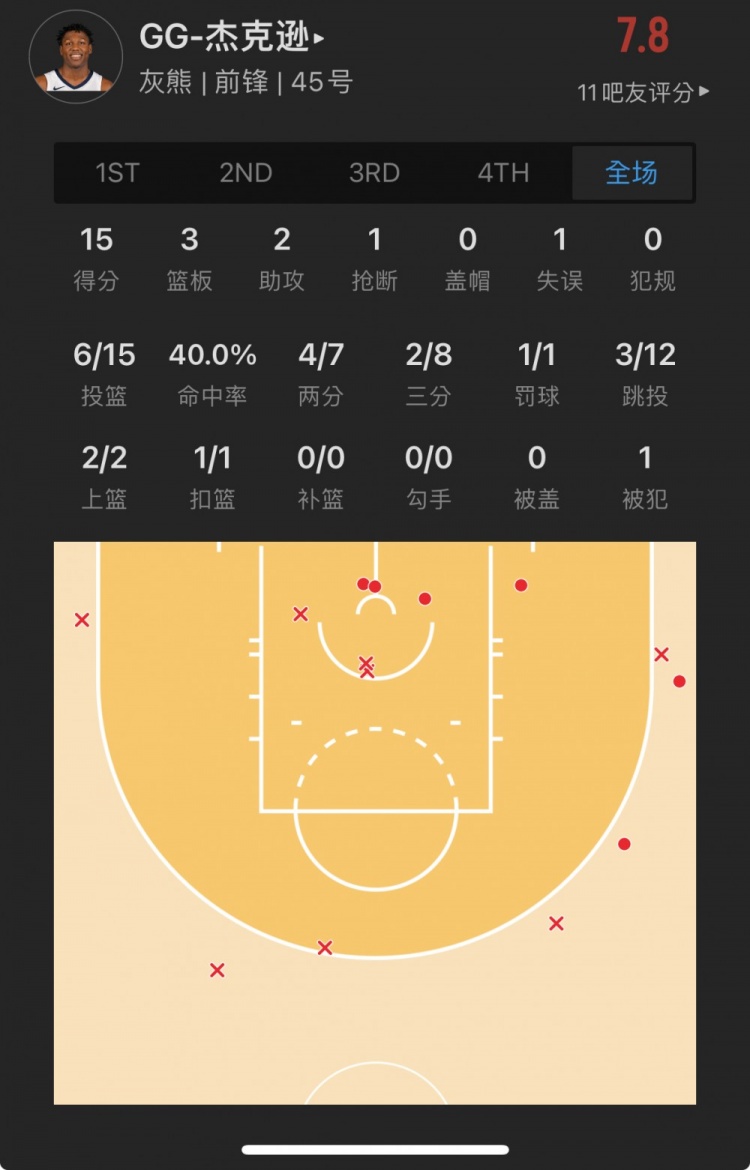 灰熊45号秀 GG-杰克逊二世 出战30.4分钟