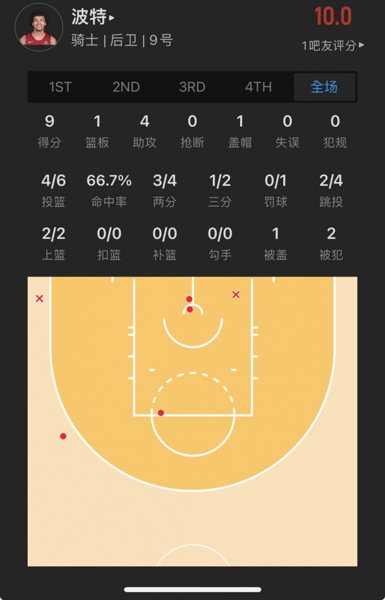 骑士落选秀 克雷格-波特 出战14.4分钟