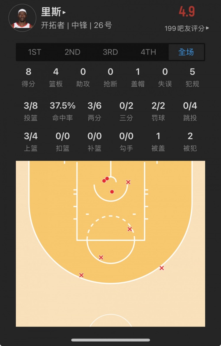 开拓者落选秀 杜普-里斯 出战24.0分钟