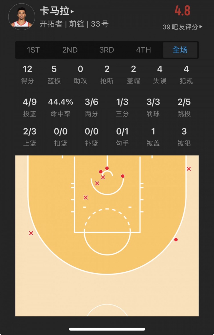 开拓者52号秀 图马尼-卡马拉 出战35.2分钟