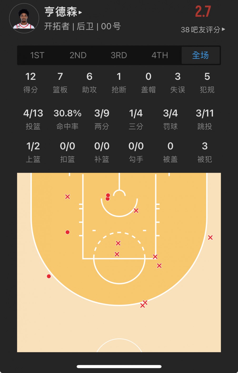 开拓者探花秀 斯库特-亨德森 出战26.0分钟
