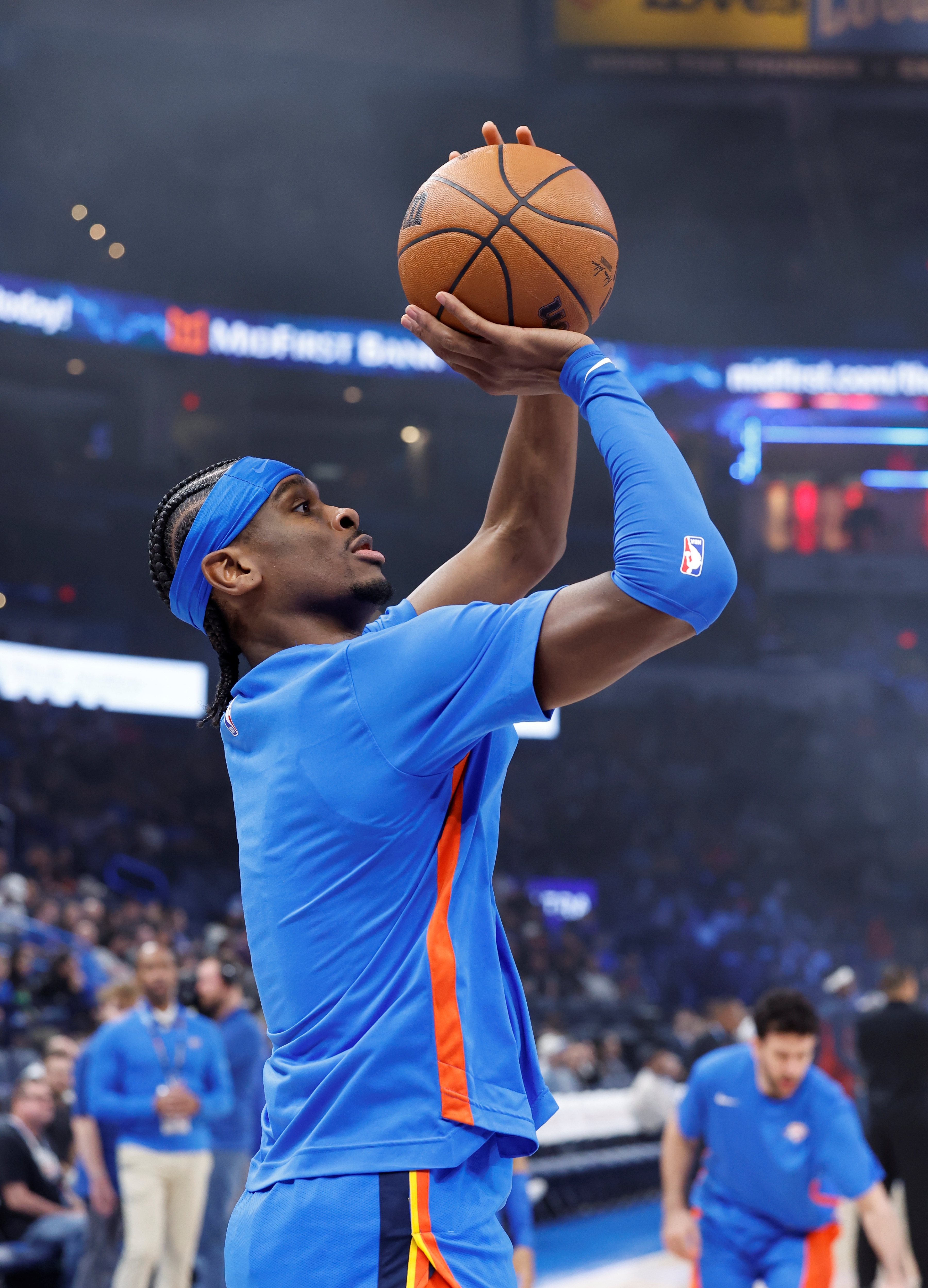 赛前,据球队伤病报告,雷霆球星亚历山大因四头肌伤势,将缺席本场比赛。