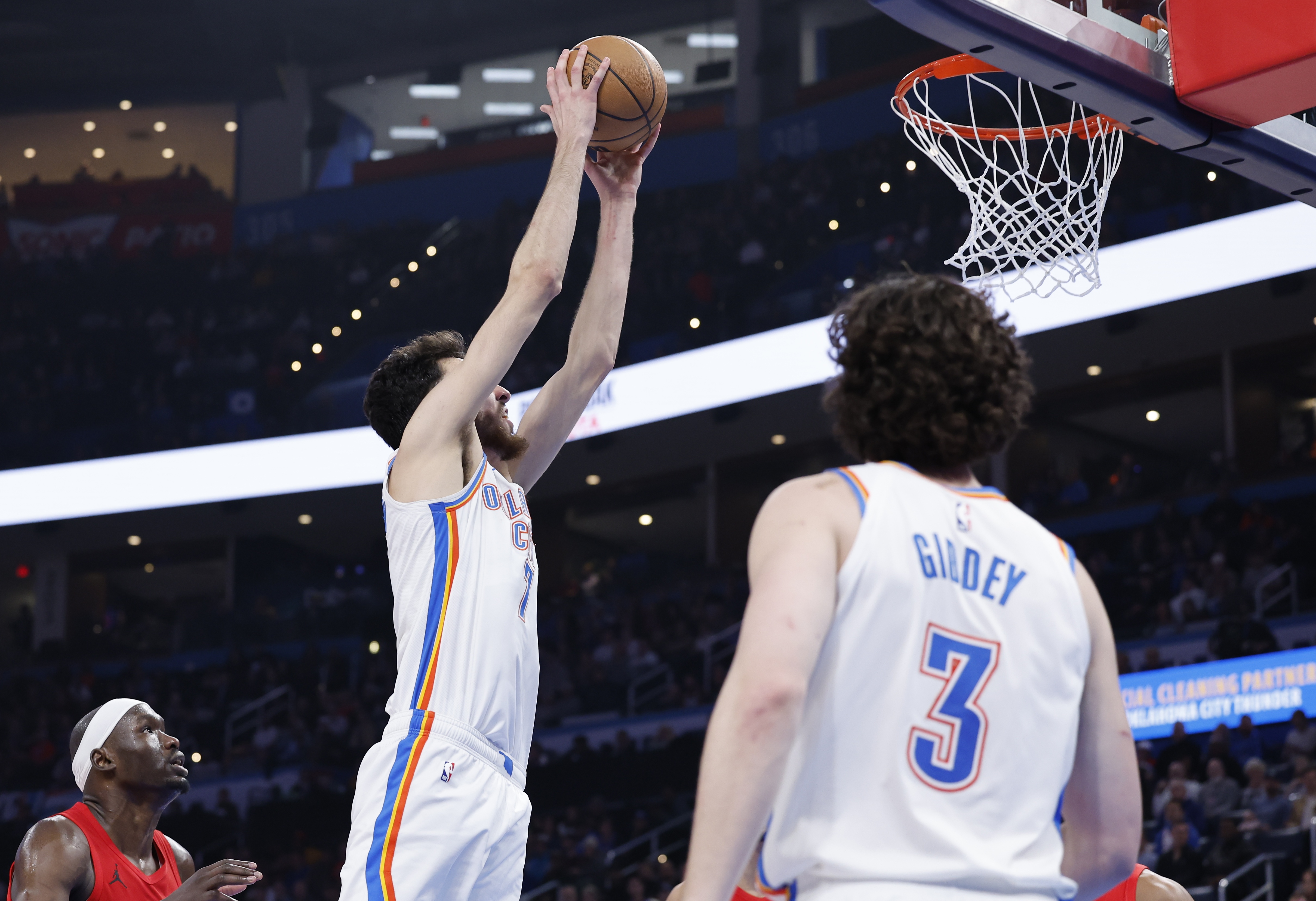 雷霆首发五虎首节失准,在没有亚历山大的情况下,多特、杰伦-威廉姆斯、基迪挂蛋,霍姆格伦和华莱士仅得2分。