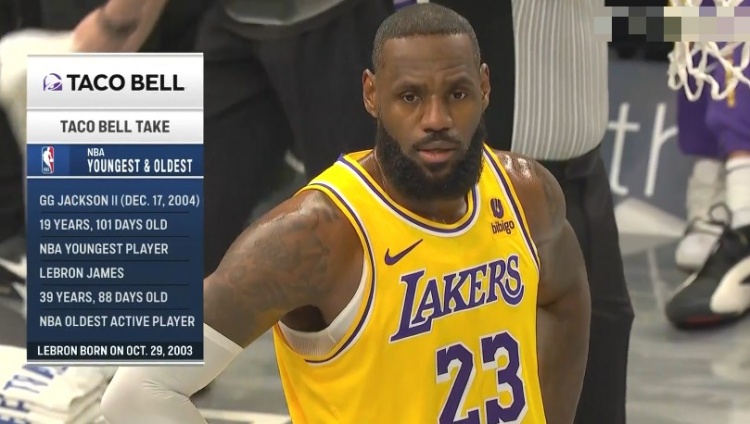 NBA联盟中最年轻的GG-杰克逊19岁零101天,而最年老的詹姆斯39岁零88天,詹姆斯进入联盟时GG-杰克逊还未出生...