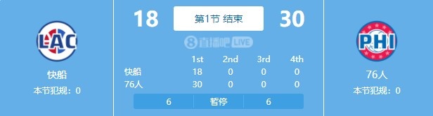 首节战罢,快船18-30落后对手12分。莱昂纳德4中0、乔治3中1、哈登3中1。