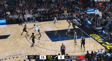 盖帽-1⛔文班帽翻扣篮的科林斯被吹犯规 摇手指表达不满