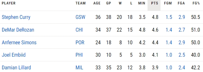 本赛季关键时刻场均得分前五↓