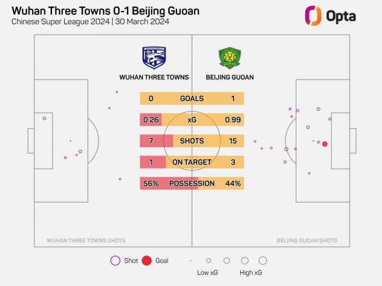 武汉三镇本场比赛只有7次射门,刷新球队单场中超联赛射门次数新低。他们的1次射正也追平球队单场最少射正次数纪录。