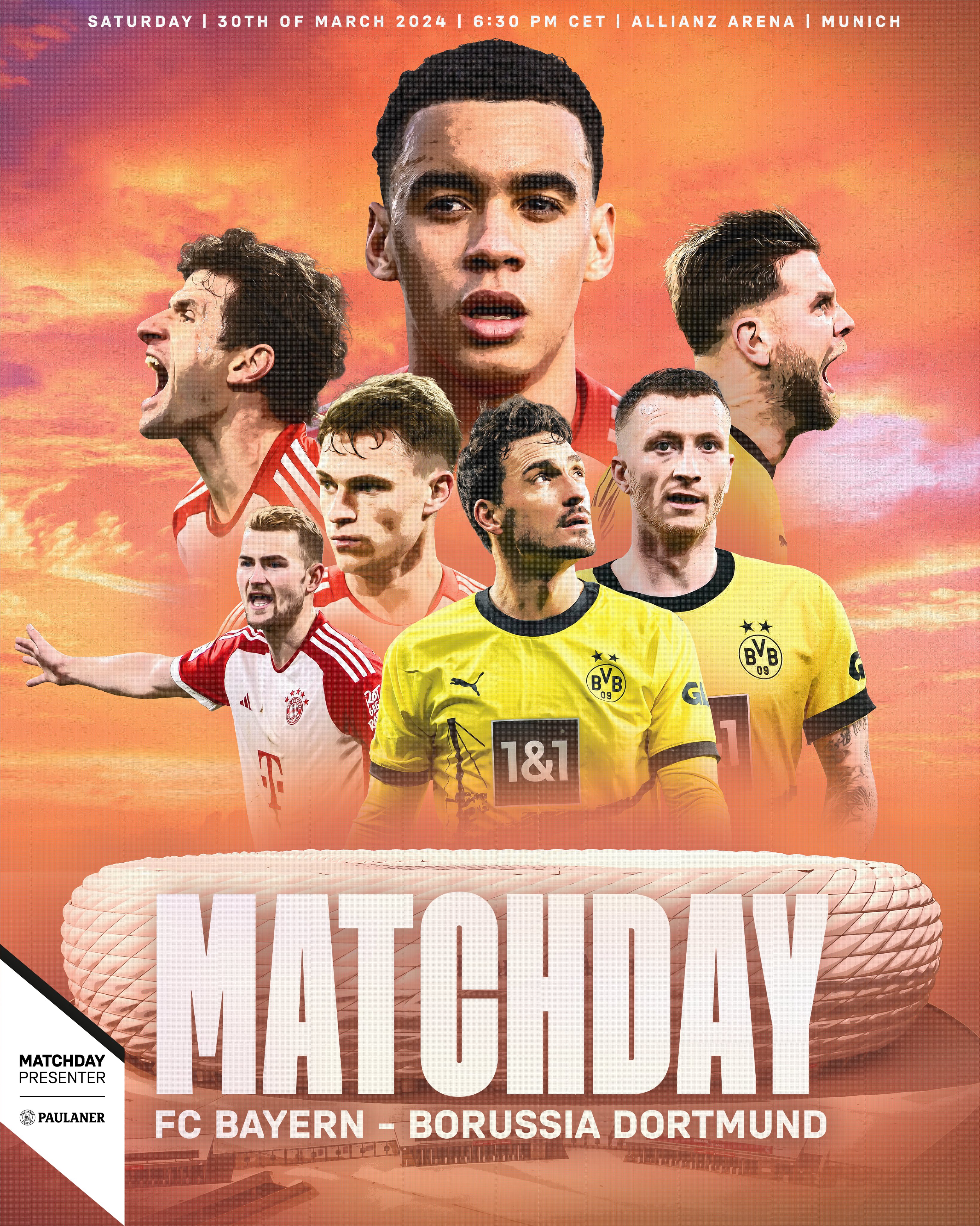 拜仁官方发布了为此役制作的海报,穆西亚拉占据C位,穆勒、德里赫特、基米希、胡梅尔斯、罗伊斯、菲尔克鲁格出镜,背景则是慕尼黑安联球场。