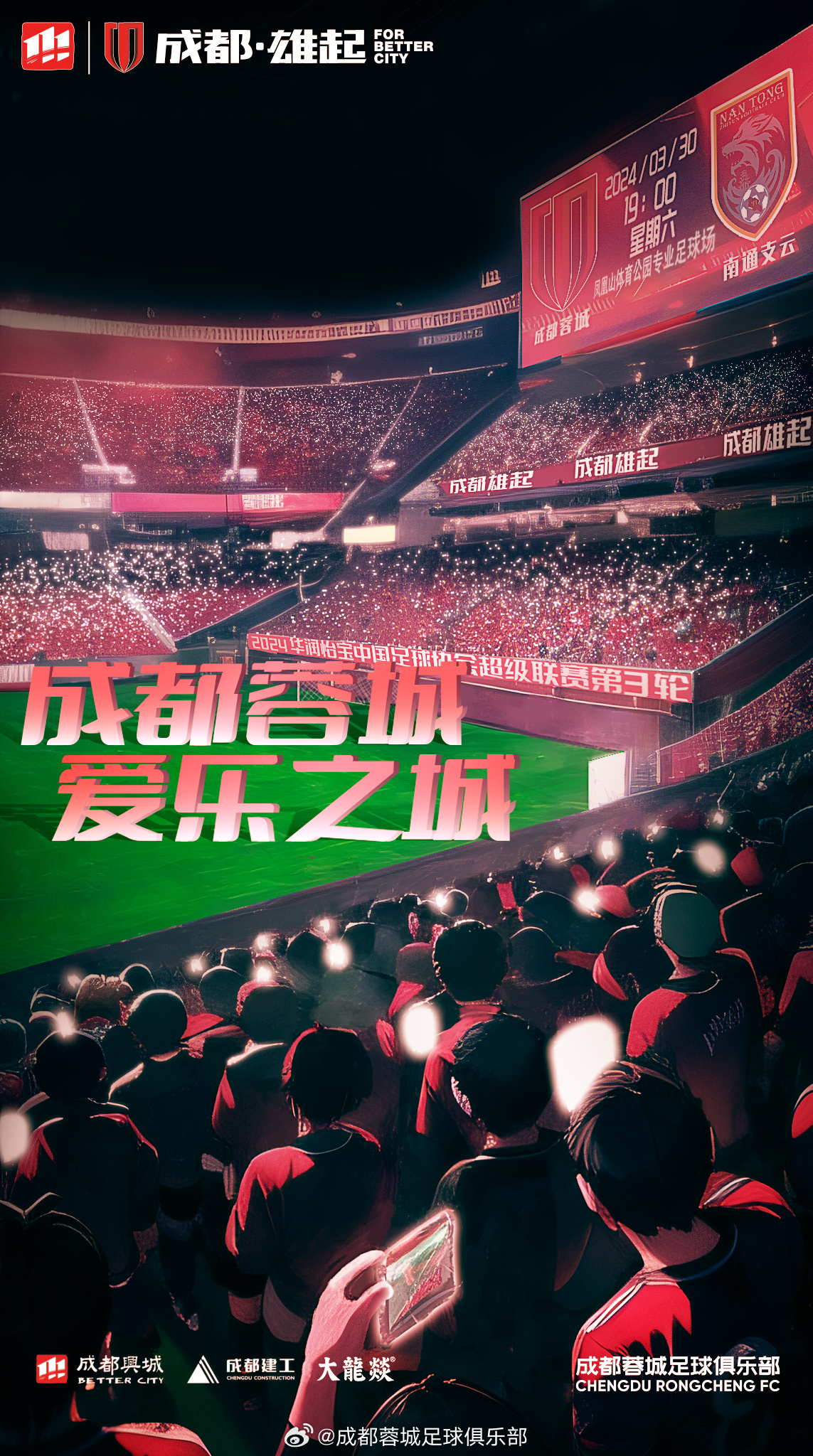 3月30日讯 北京时间19点,中超第3轮,成都蓉城vs南通支云,赛前双方首发公布。