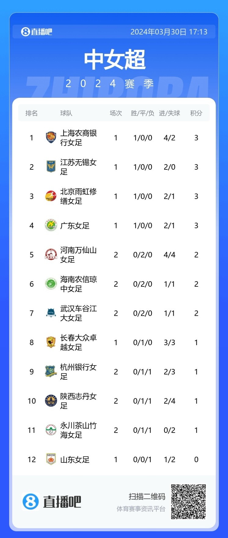 3月30日讯 今天下午15:00,女超联赛第2轮展开两场较量,卫冕冠军武汉车谷江大女足1-1战平河南女足,遭遇开局两连平。