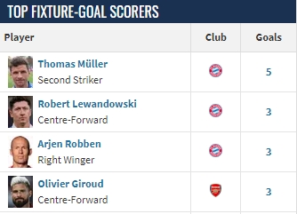 在两队的交锋历史中,穆勒打入5球,为两队进球最多的球员,莱万、吉鲁、罗本都曾打入3球。