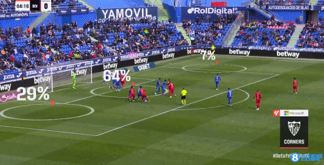 03月30日讯 西甲第30轮,塞维利亚客场对阵赫塔费,半场塞维利亚1-0领先,塞维利亚中后卫拉莫斯第5分钟门前包抄打入1球。