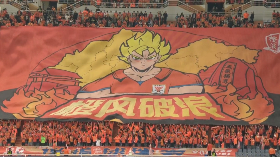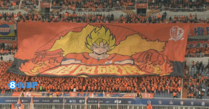 橙风破浪!山东泰山主场巨幅TIFO:超级赛亚人