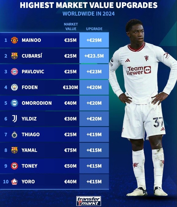 4月1日讯 《转会市场》在此前更新了球员身价,并列出了本期身价上涨最多榜。