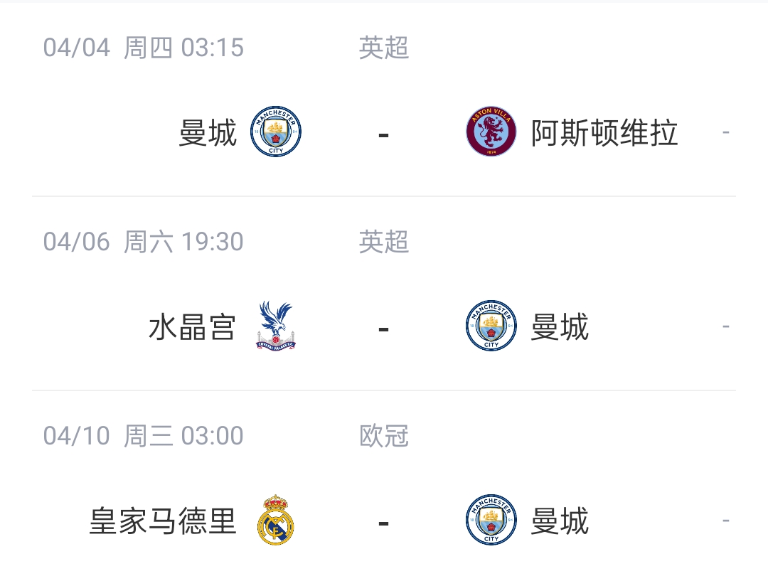 这赛程曼城将迎来7天3赛,皇马休息8天坐等欧冠