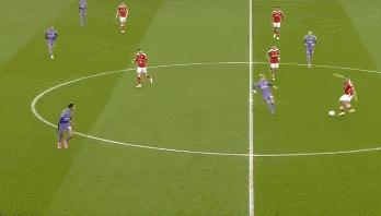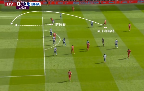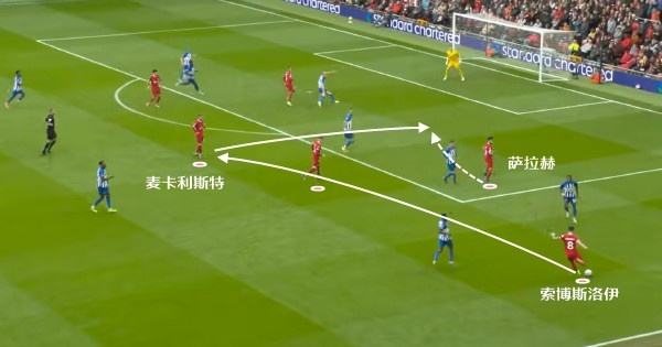 当萨拉赫或者索博斯洛伊在右边路拿球时,横传找麦卡利斯特,他不只是会传球,也可以自己射门得分。