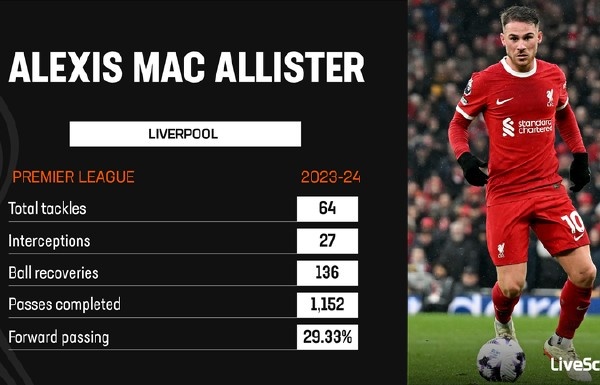 作为一名中场,麦卡利斯特如此显眼的数据,让他成为无数利物浦球迷爱戴的对象。