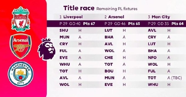 阿森纳同样需要迎战切尔西、热刺和曼联,就剩下的对手来看,还是曼城相对更有优势。