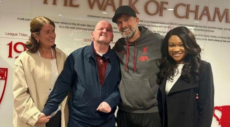 4月1日讯 利物浦官网消息,主帅克洛普在周日下午与红军球迷Seán Cox在安菲尔德重聚并亲切交流。
