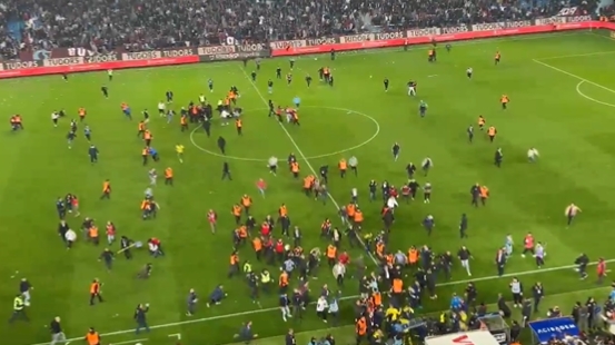 4月2日讯 3月18日的土超,费内巴切3-2客场战胜特拉布宗体育。赛后,费内巴切球员留在球场上唱跳庆祝,引起了主场球迷不满。其中一名球迷冲进球场,迅速被费内巴切球员和工作人员控制住并且按在地上击打,随后大量球迷冲进球场,场面演变为上百人的大混战。