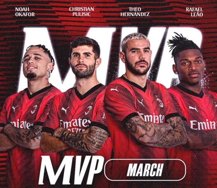 4月2日讯 米兰官方公布3月最佳球员候选,分别是奥卡福、普利西奇、特奥以及莱奥。在3月份,米兰取得6战全胜的战绩。