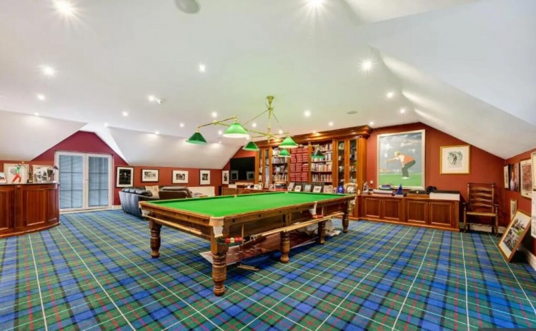 这套五居室的豪宅位于柴郡最好的地段,配有时尚的开放式厨房和游戏室,游戏室装饰有艺术品、橡木书柜和斯诺克台球桌,楼梯上则铺有独特的“弗格森家族”格子地毯。