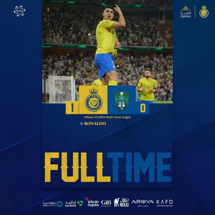 沙特联-利雅得胜利1-0国民先赛距榜首9分 C罗点射&23球领跑射手榜