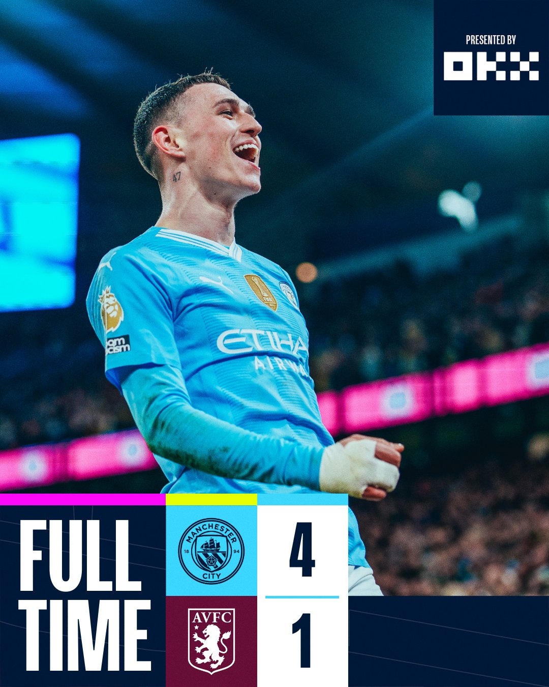 4月4日讯 本轮英超焦点战,曼城4-1击败维拉,为上半程的输球完成复仇。上下半程的比赛,曼城拿出了截然不同的表现。