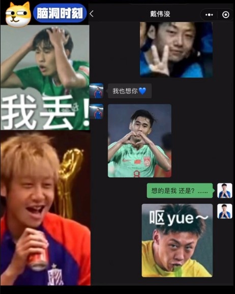 徐皓阳说:“我们还会发戴伟浚的表情包,因为戴伟浚老跟汪海健发他自己的表情包,所以就流传出来了。”
