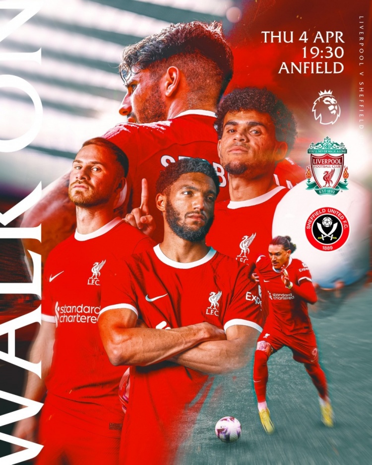 利物浦发布了为此役制作的赛前海报,乔-戈麦斯、路易斯-迪亚斯、努涅斯、麦卡利斯特、索博斯洛伊出镜。