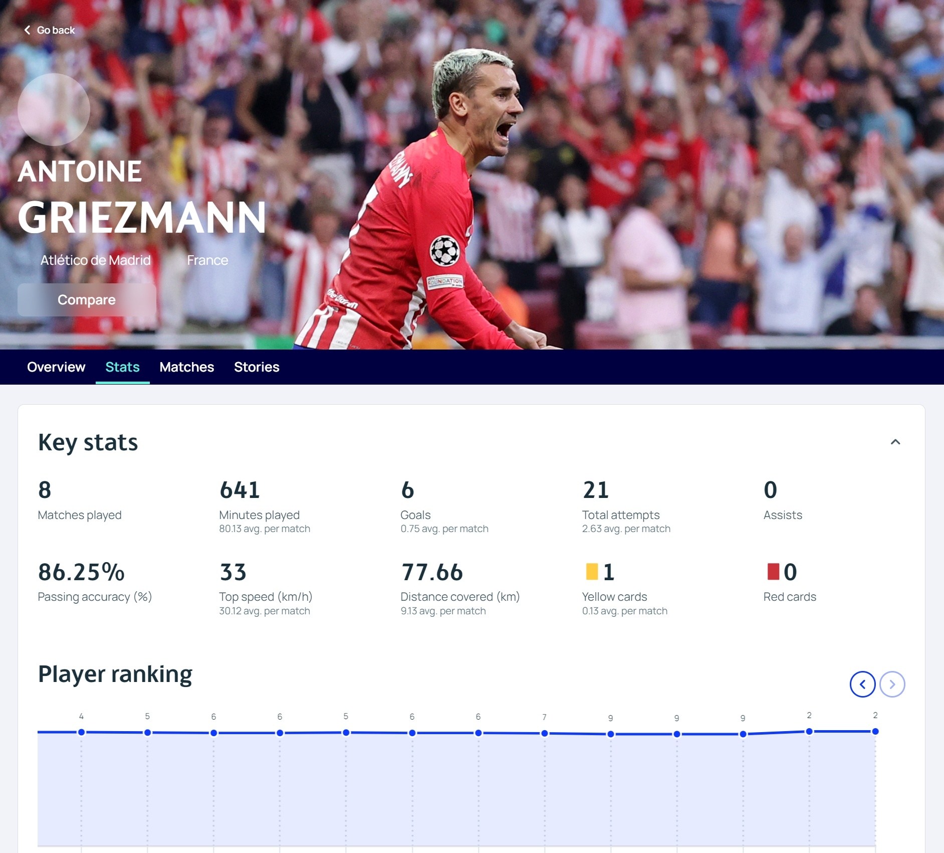 2、前锋-格列兹曼(马竞)283分/8场6球