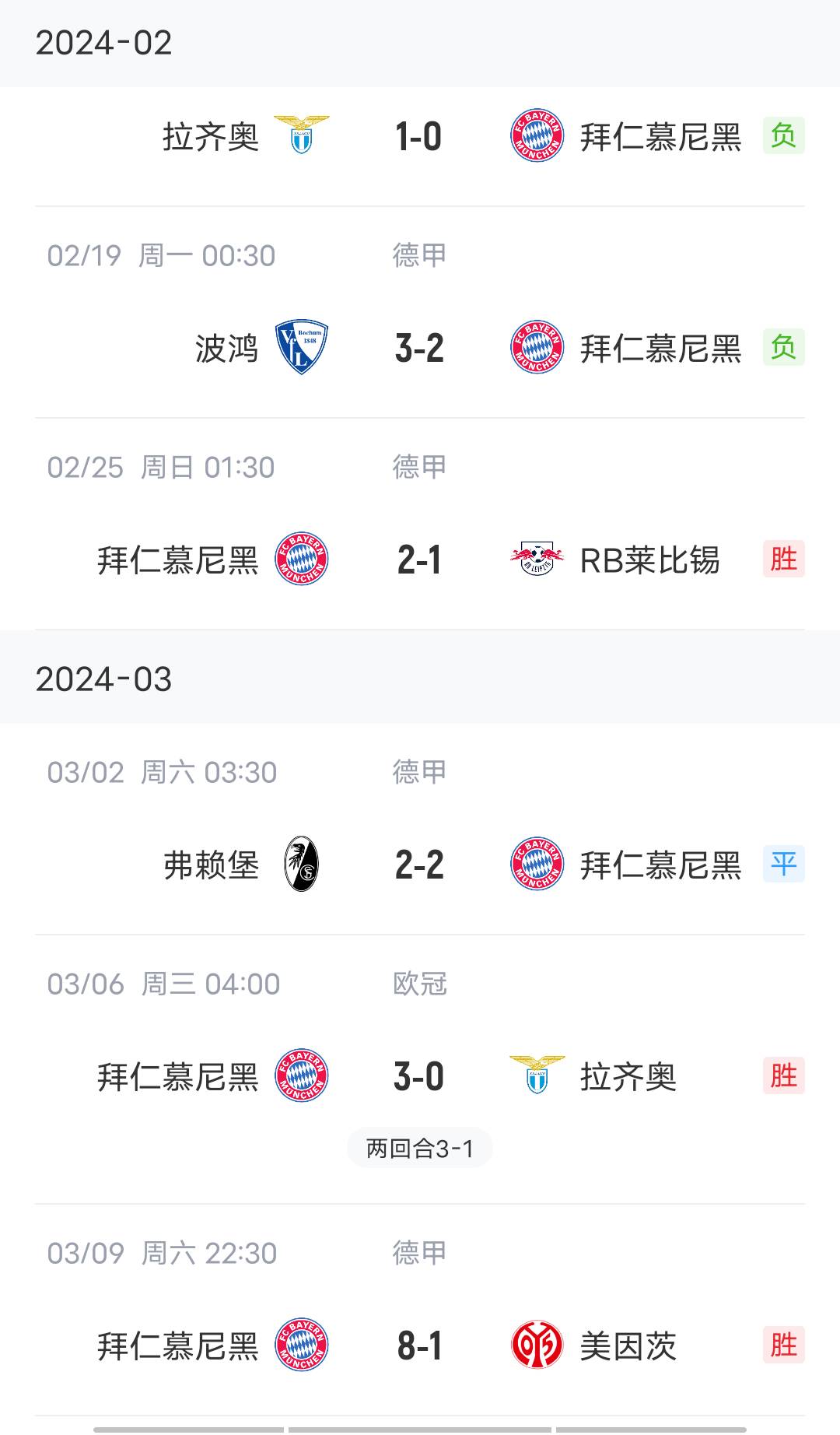 德甲第二拜仁则是各赛事四场三胜一平保持不败,上一轮德甲更是8-1血洗美因茨。