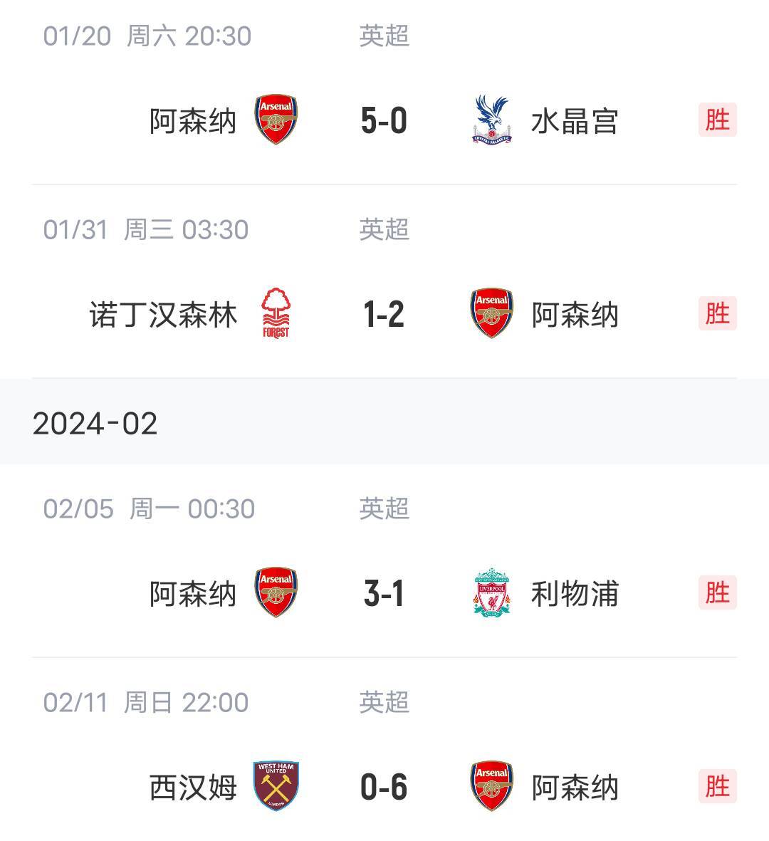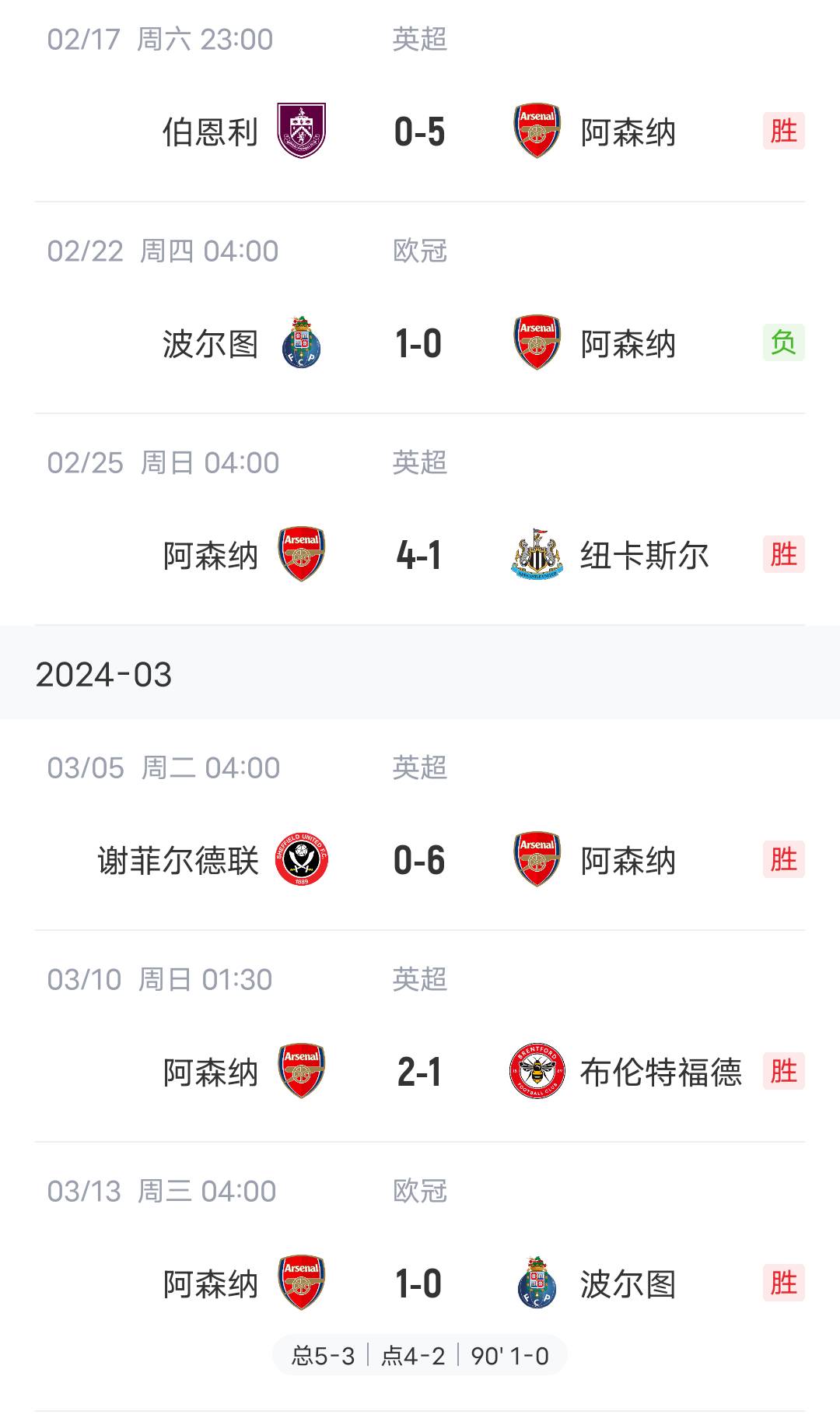 阿森纳目前高居英超第一,在联赛已经八连胜,各赛事近10场9胜1负,仅在欧冠0-1输给了波尔图。