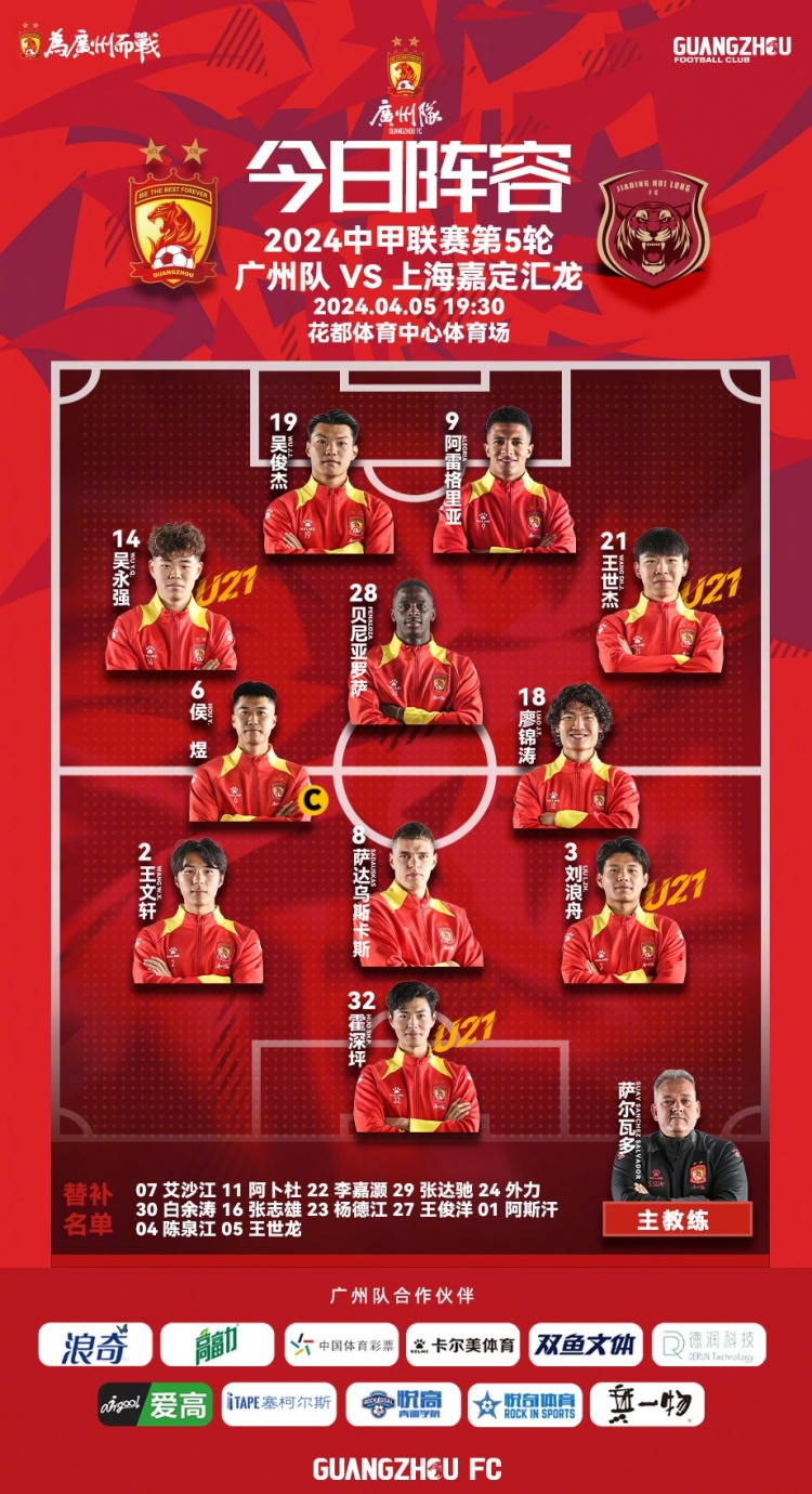 广州队今日首发阵容!!!