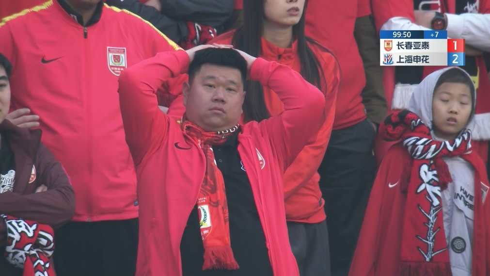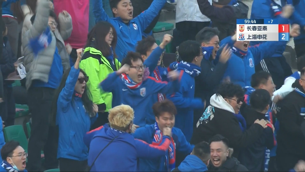 悲喜两重天!申花球迷集体狂欢亚泰球迷抱头傻眼