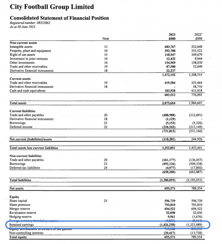 其中曼城贡献了7.13亿英镑的收入,税前利润为8000万英镑。而CFG目前的总亏损已超过14亿英镑。