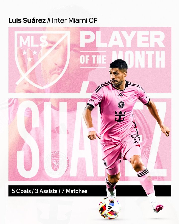 官方:5球3助贡献8球,苏亚雷斯当选美职联3月最佳球员