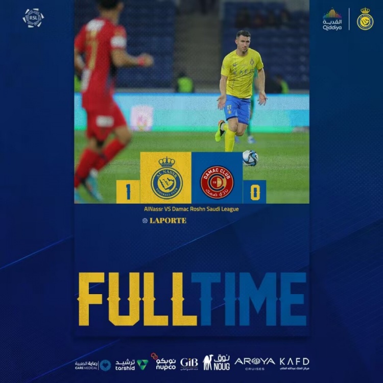 沙特联-利雅得胜利1-0达马克 拉波尔特补时绝杀C罗替补出战30分钟