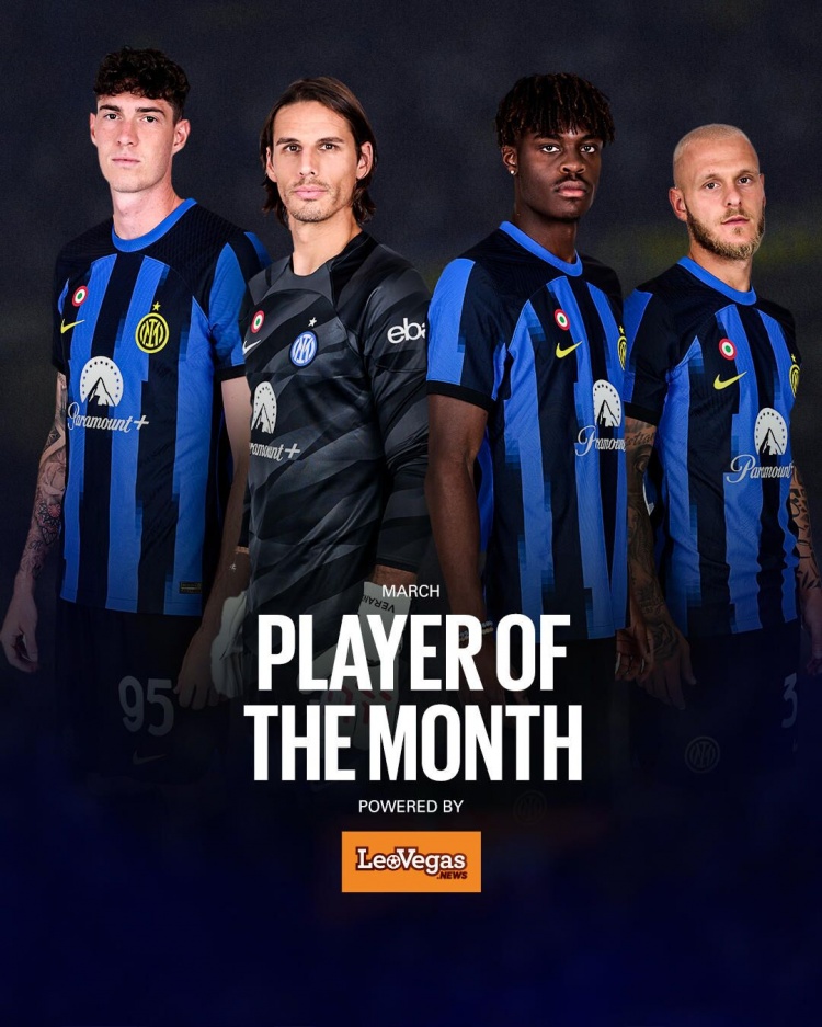 4月6日讯 国米官方公布了3月队内最佳球员的候选名单,迪马尔科、索默、巴斯托尼和比塞克入围。