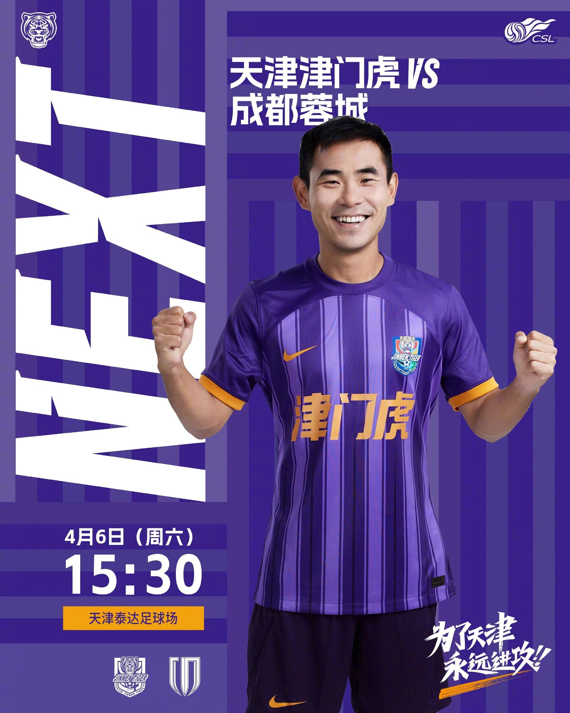 4月6日讯 中超第4轮,天津津门虎vs成都蓉城。赛前双方的首发出炉!